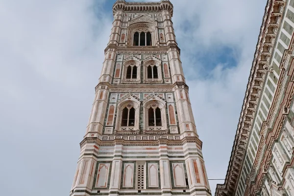 Adjacent to the Cathedral facade stands Giotto’s Bell Tower, where visitors can climb the levels of the structure to observe the surrounding urban landscape.